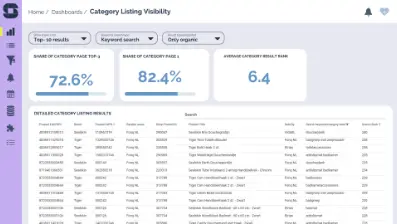 Our Visibility Tracking feature allows you to learn whether your products are indeed highly visible for the keywords and category listing pages that matter most to you. Understand with whom you’re competing for the top spots and how your visibility changes over time.