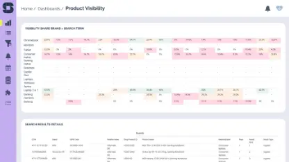 Gain insights into your product positions on Search Engine Results Pages (SERPs). Understand your ranking and page position per retailer, how you perform compared to the competition, and how to achieve the number one position. For each retailer, our performance overview shows exactly where you excel and where improvement is needed. Track your product positions easily and boost your visibility.